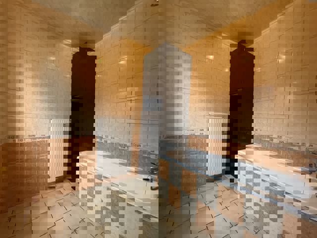 - Extérieur : Cour/terrasse (+/- 100 m²), jardin (+/- 450 m²), parking (+/- 4 voitures) avec portail motorisé