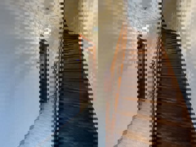 - Rez-de-chaussée : Hall d'entrée (+/- 8 m²), caves, salon/salle à manger ouvert (+/- 24 m²), cuisine équipée (+/- 10,43 m²), salle de bain (+/- 7,26 m²)