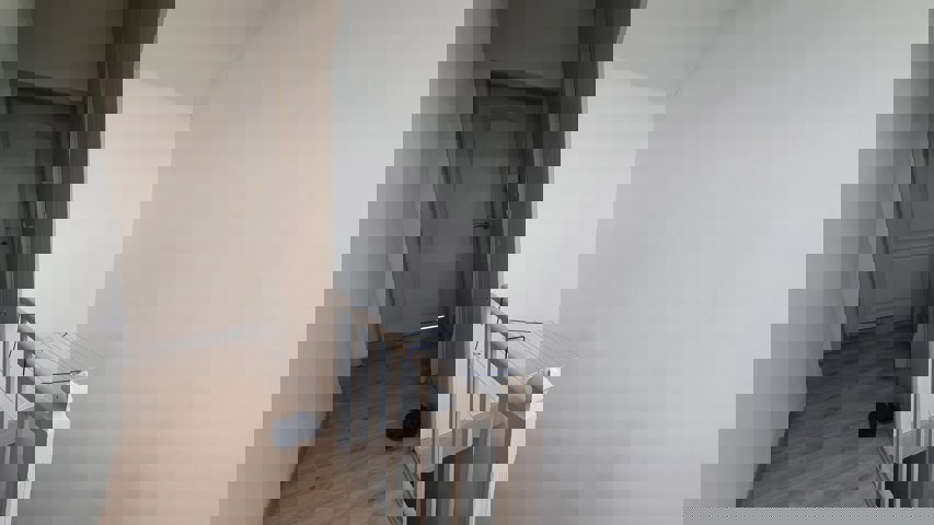 Le hall de nuit distribue 2 chambres (+/- 10,22m²-8,21m²), une salle de douche de +/- 7,54m², complétement carrelé et l'accès au grenier de 30 m² avec possibilité d'aménagement en deux chambres.