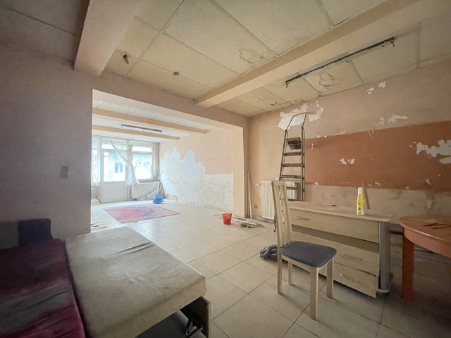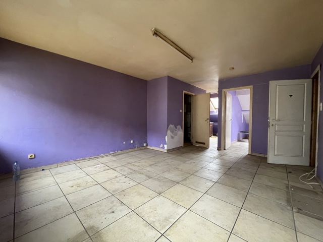 1er étage, plateau de +/- 40m² avec salon de +/- 15m², coin cuisine de +/- 8m², salle de douche +/- 2² et 1 chambre de +/- 12m² pas d’extérieur.