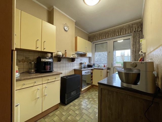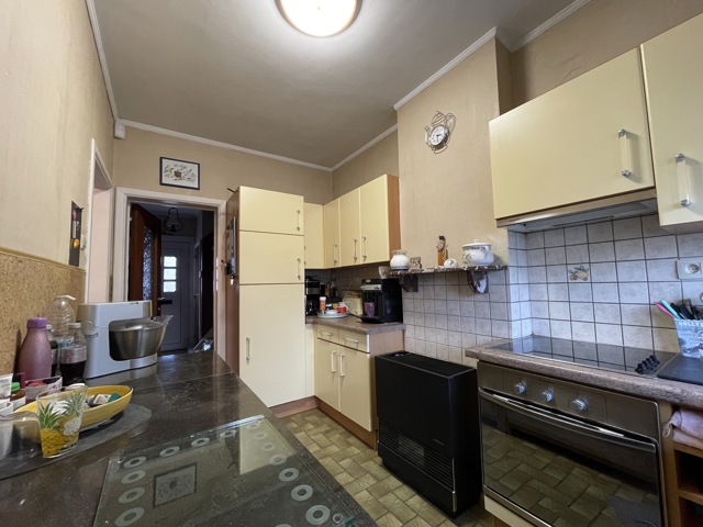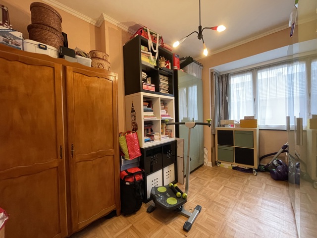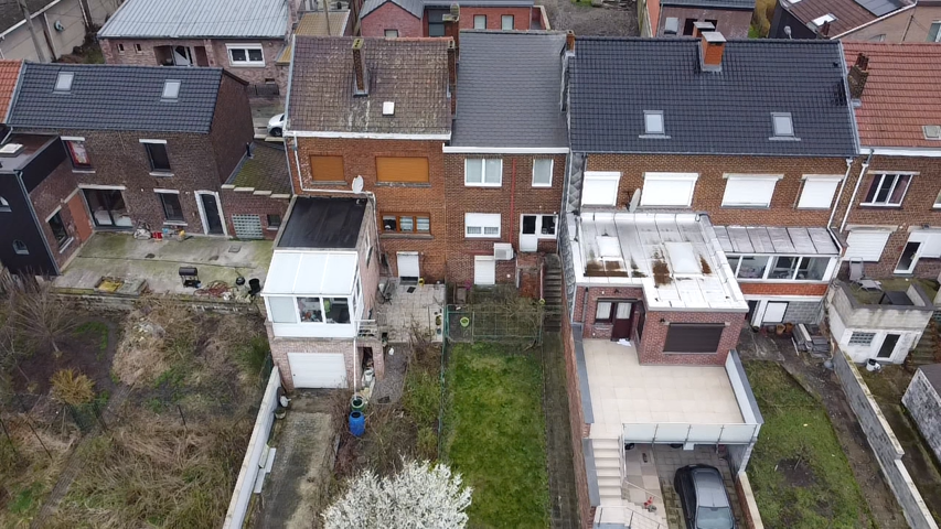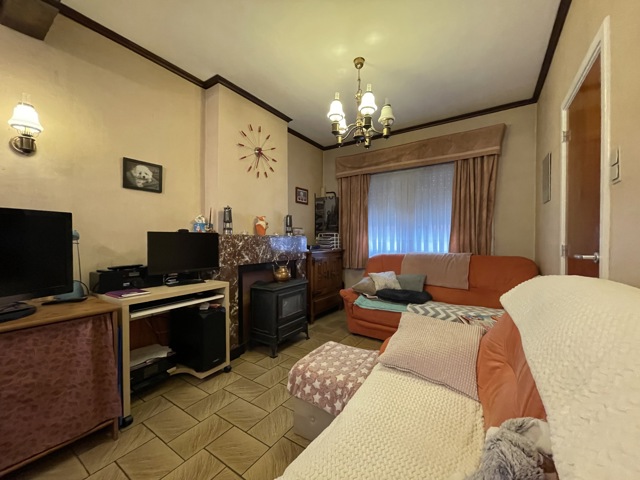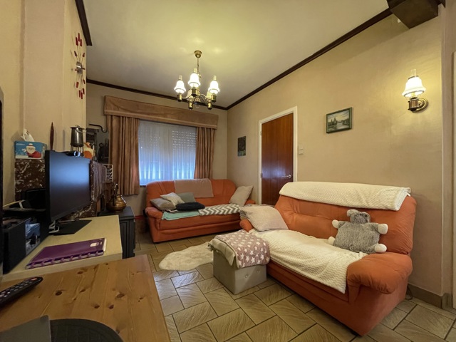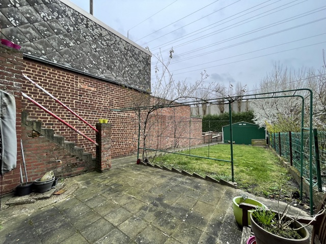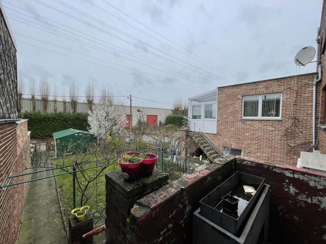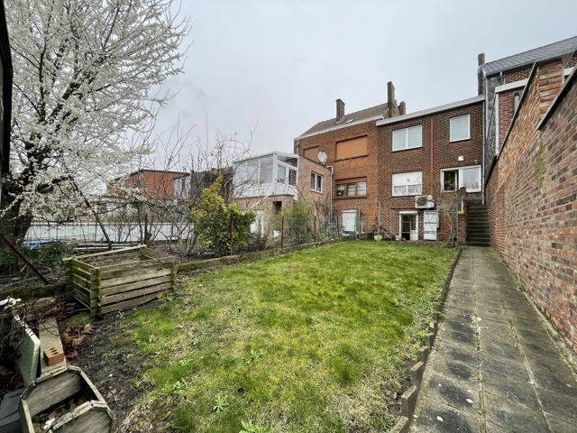 Celle-ci se compose : d'un hall d'entrée, w.c. séparé, petit salon et salle à manger ouvert de +/- 21m², cuisine semi-équipée avec l’accès au jardin de +/- 100m².