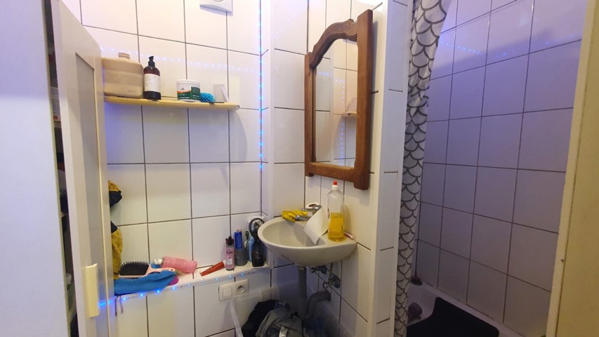 Rez-de-chaussée : On retrouve un studio composé d'un grand séjour de 24m², d'une cuisine de 8m² et salle de douche de 2m², pas d’extérieur.