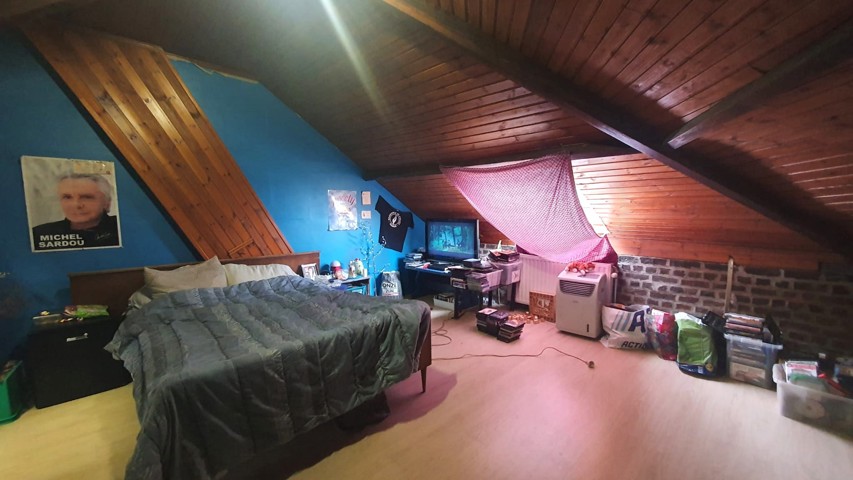 1er étage : un appartement sur deux étages composé d’une grande pièce de vie avec coin cuisine de 21m², une salle de bain 15m², et à l'étage supérieur 2 chambres deb 7 et 19m², pas d’extérieur.