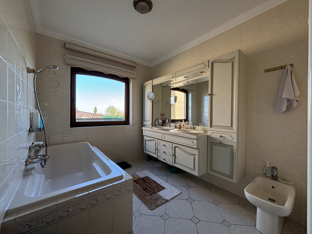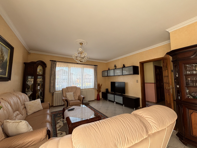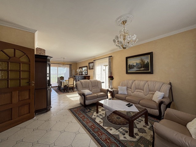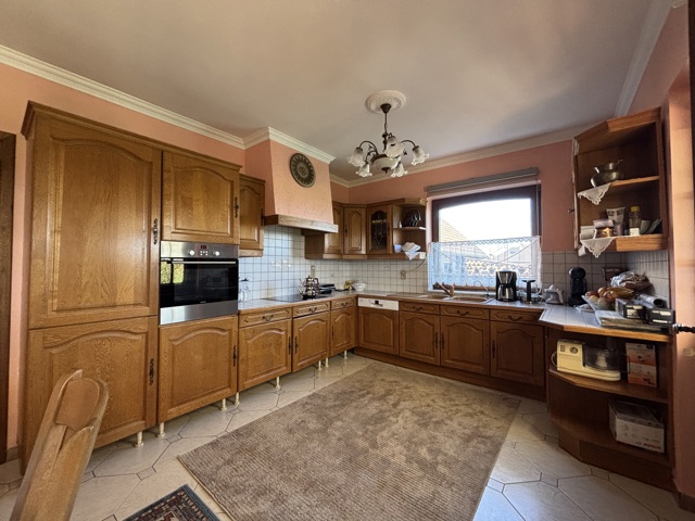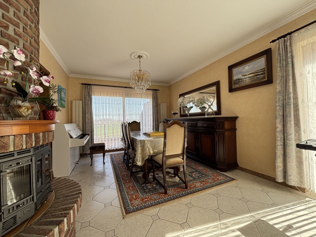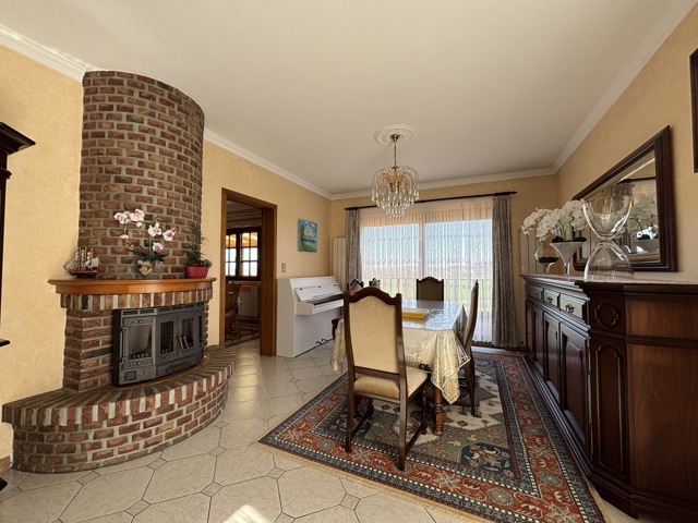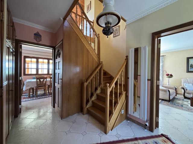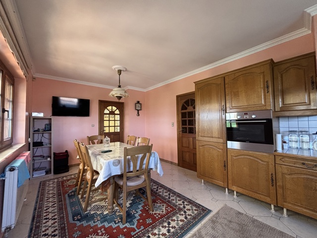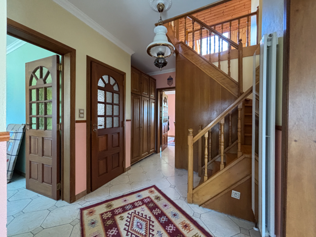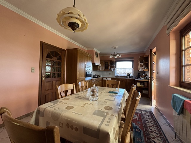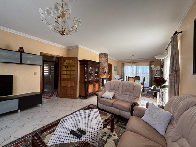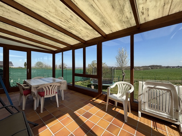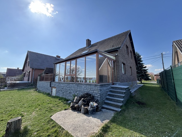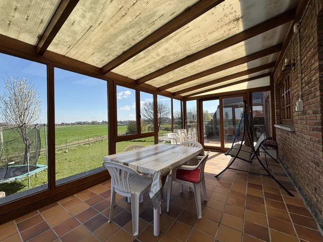Châssis double vitrage en bois de qualité, toiture isolée, panneaux photovoltaïques, chauffage central au gaz, adoucisseur d'eau, citerne à eau de pluie, performance énergétique PEB B, très grand garage 2 voitures.