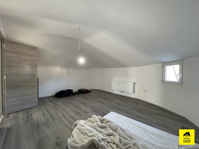 -La maison unifamiliale est composée au rez-de-chaussée d’une salle de douche, d’un salon spacieux ainsi qu’une cuisine ouverte. Au premier étage vous trouverez 2 chambres spacieuses. Au dernier étage, 2 grandes chambres mansardées supplémentaires. Cette maison possède également une grande cave. Actuellement louée 900€.