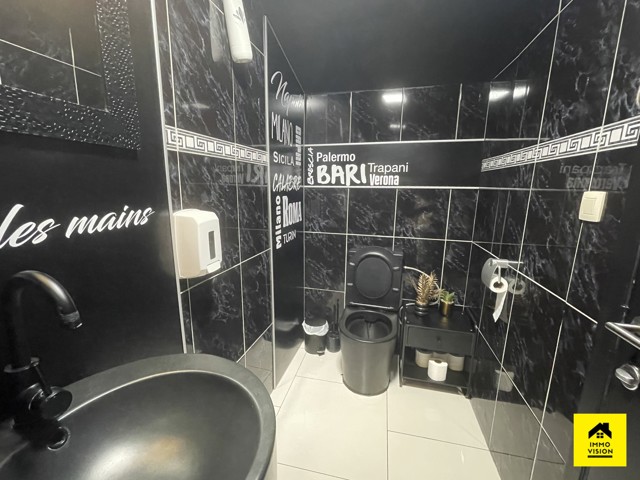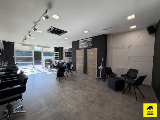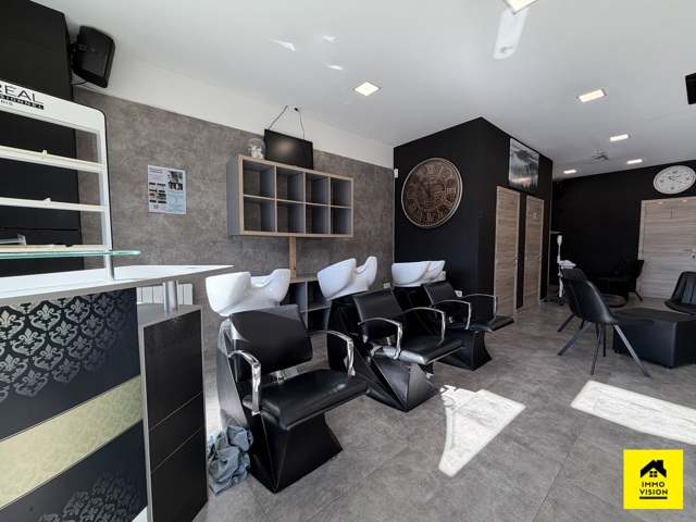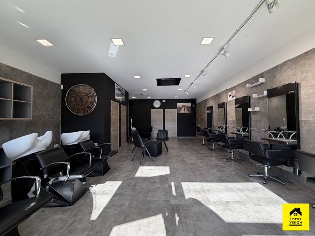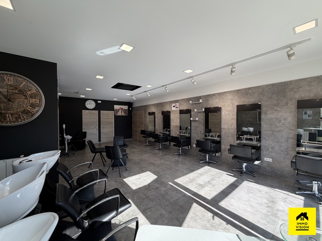 Le dernier commerce est un salon de coiffure entièrement équipé (3 bacs à shampoings, 6 unités de coiffure avec miroir de m², avec 4 pièces adjacentes permettant l’exercice d’autres professions conjointes. Il y’a également 2 salles de douche. Eléments techniques : PAC air chaud/froid, châssis DV PVC.