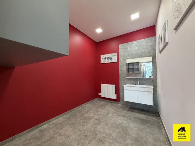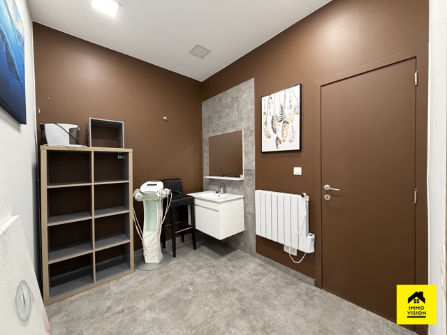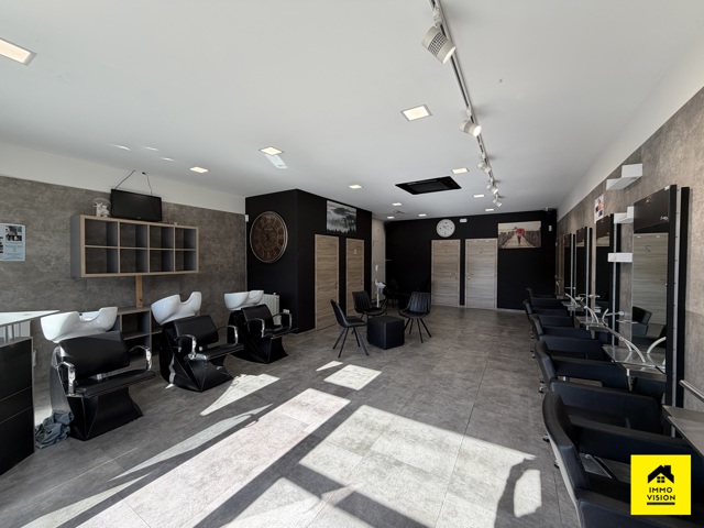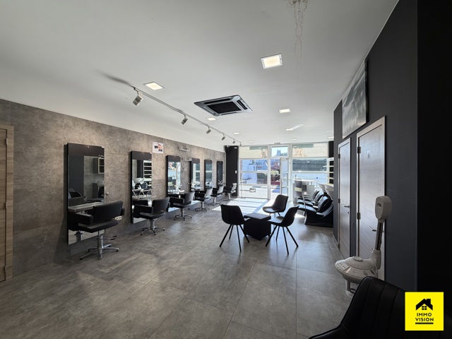 Le dernier commerce est un salon de coiffure entièrement équipé (3 bacs à shampoings, 6 unités de coiffure avec miroir de m², avec 4 pièces adjacentes permettant l’exercice d’autres professions conjointes. Il y’a également 2 salles de douche. Eléments techniques : PAC air chaud/froid, châssis DV PVC.